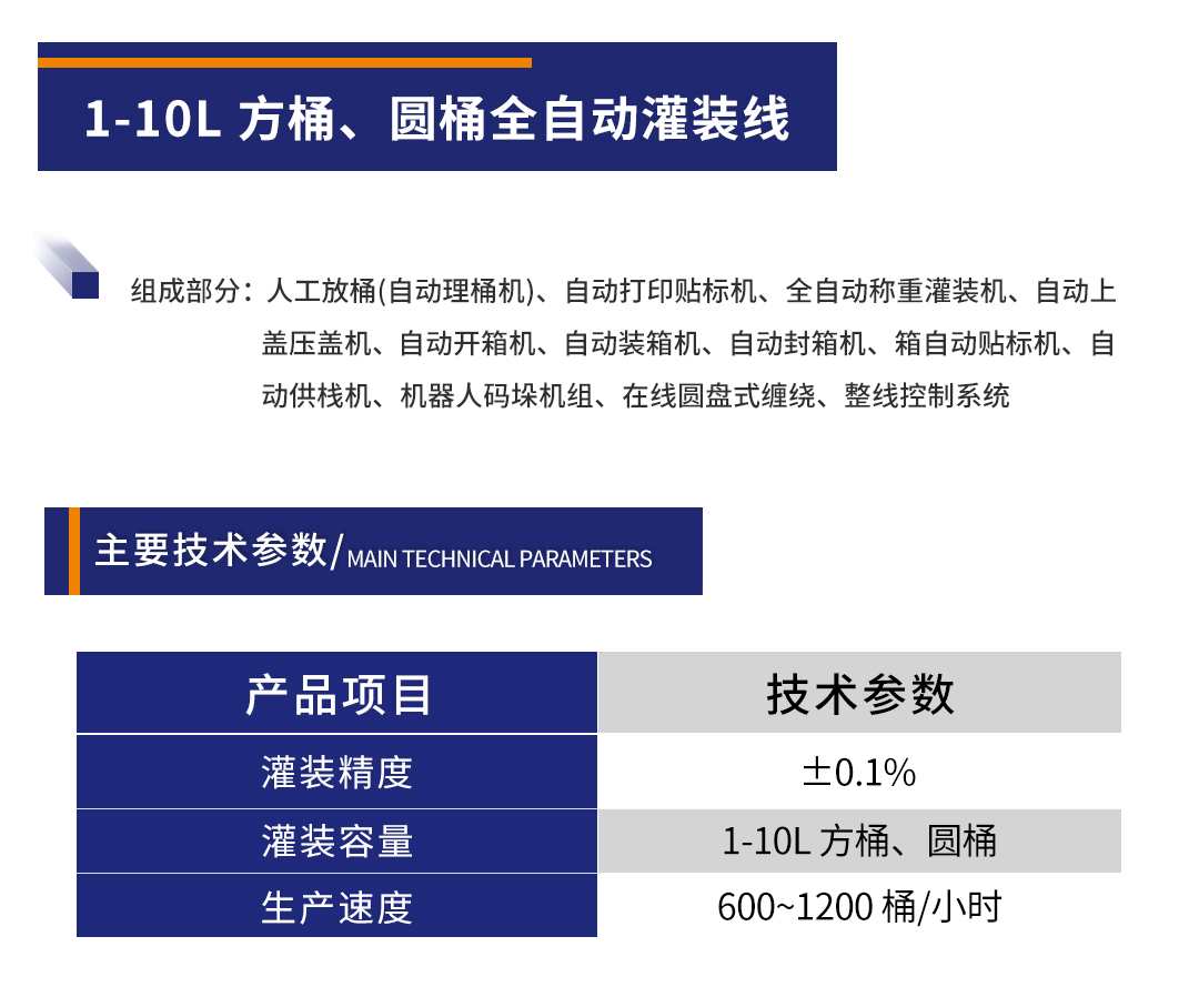 • 產品名稱:1-10L 方桶、圓桶全自動灌裝線