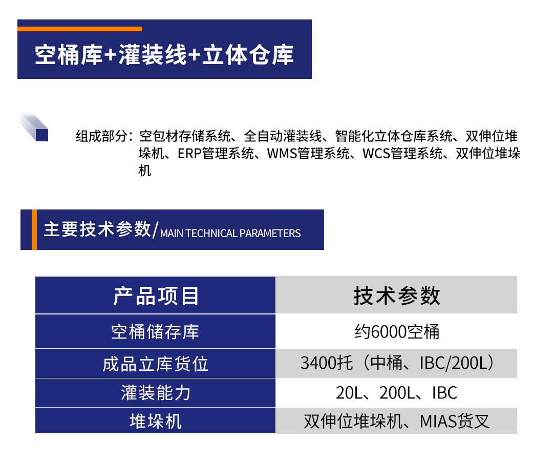 • 產(chǎn)品名稱:空桶庫+灌裝線+立體倉庫